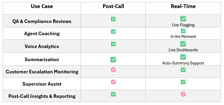 By waiting until the call concludes, Echo can analyze the full conversation holistically – delivering the most reliable, detailed output for downstream analysis. It’s the right fit when real-time speed isn’t required, but precision and completeness are critical.